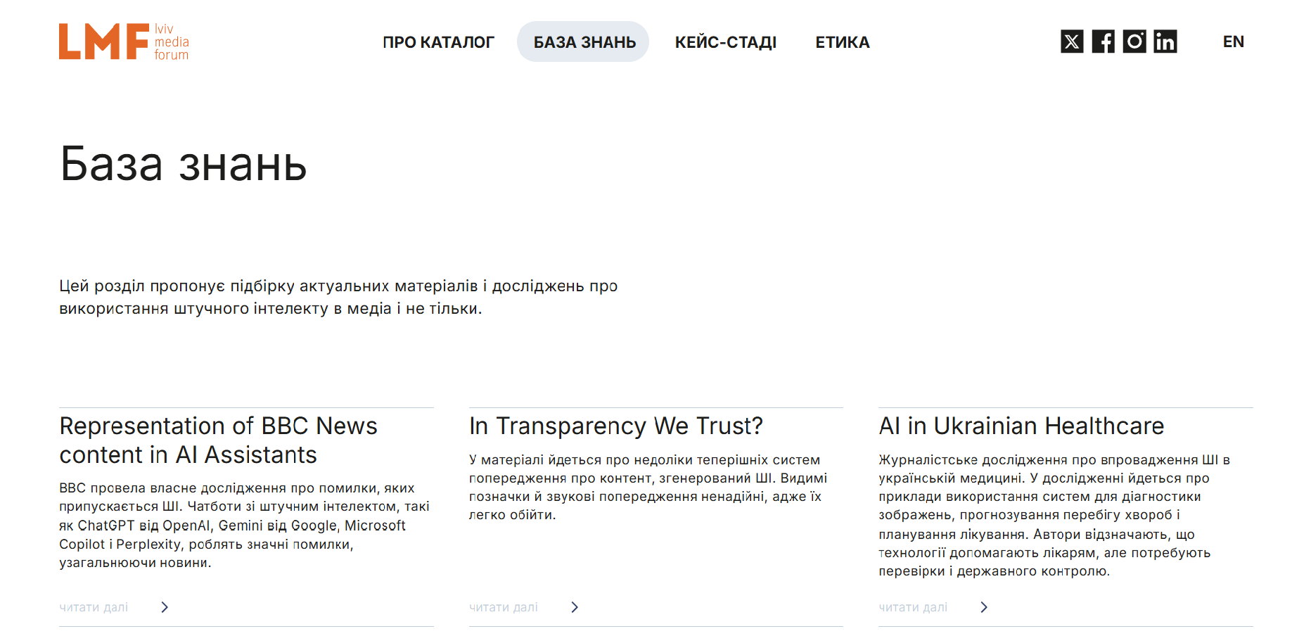 На платформі також розміщені допоміжні матеріали для використання ШІ. У розділі «База знань» є підбірка актуальних матеріалів і досліджень про використання штучного інтелекту в медіа і не тільки. У розділі «Кейс-стаді» зібрані реальні приклади використання АІ-інструментів в українських та міжнародних редакціях. Розділ «Етика» містить ключові етичні протоколи, гайди та правила використання ШІ, створені державними й освітніми інституціями, аналітичними центрами та технологічними компаніями.